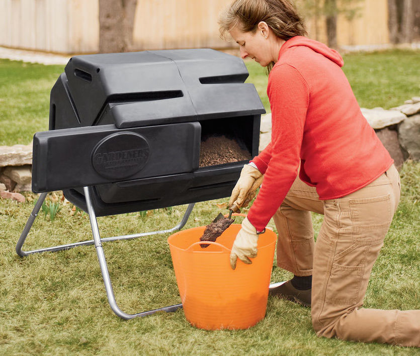 If turning your compost with a pitchfork sounds time-consuming, perhaps a compost tumbler would be right for you. Compost tumblers contain and elevate your food scraps and yard waste, and rotate, speeding up the composting process while keeping all organic products tidy, which makes them ideal for urban and suburban locales. A turn of the crank mixes compost without getting your hands dirty, and they are easier to empty than compost bins. Tumblers tend to cost a little more. Bins, on the other hand, hold more and are more durable because they lack moving parts. There are more advanced systems out there that will compost in four seasons and don’t require turning, like the Aerobin. But if you don’t want to go outdoors and you want your composter to be as convenient as your dishwasher, you might look into an electric composter. Keep in mind that these use energy, so they’re not as environmentally friendly as non-electric options.