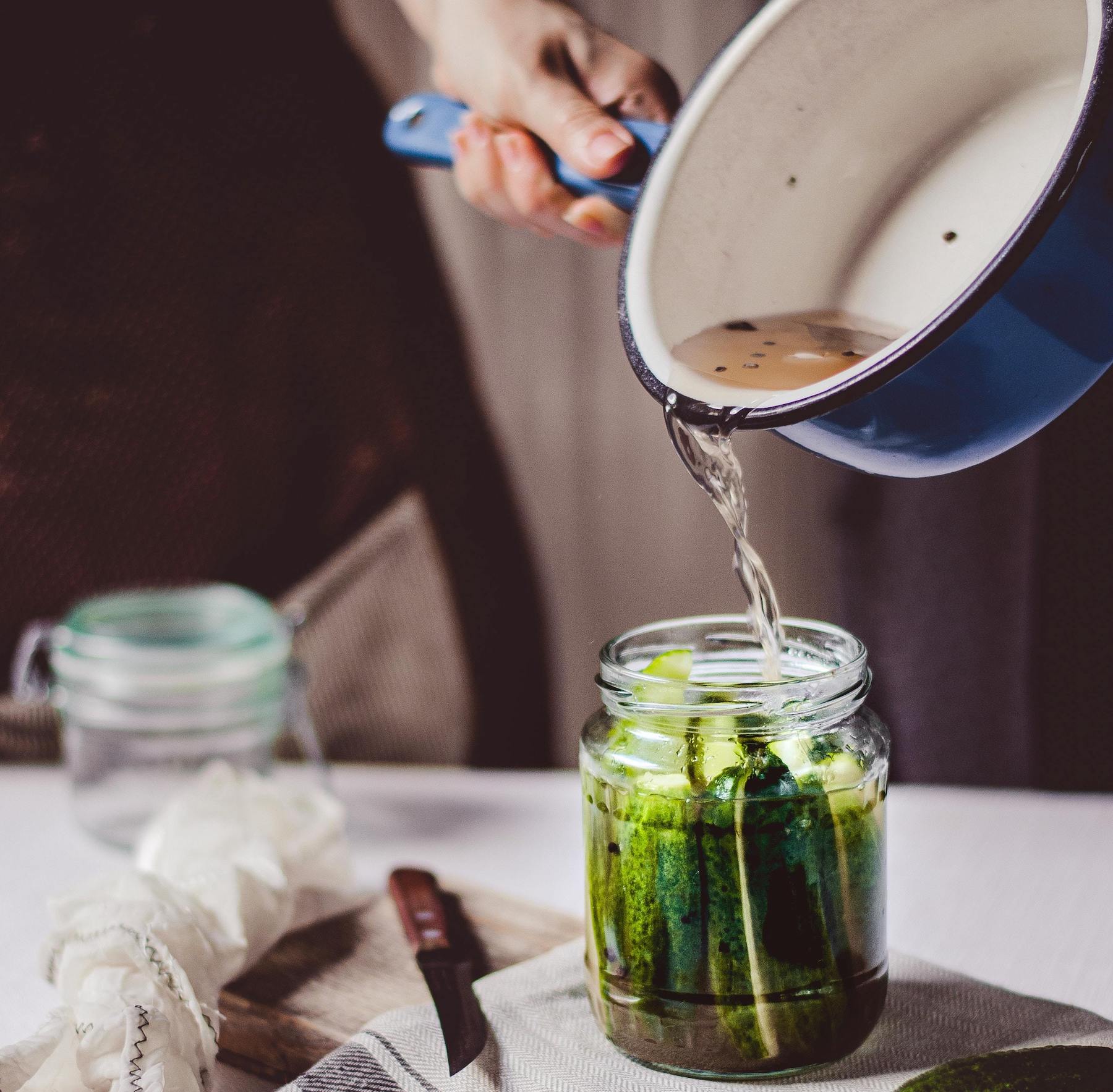 Take the pot off the stove once it has boiled, then cool for a couple of minutes before pouring over your vegetables in the jars. Leave half an inch to an inch at the top of the jar unfilled.
