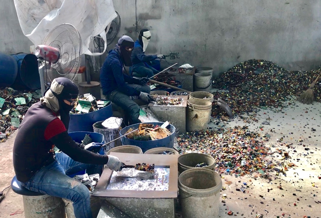 Copyright BAN under CC BY-ND 2.0 - Workers in Thailand wear improvised protective gear while processing e-waste from North America and Europe.